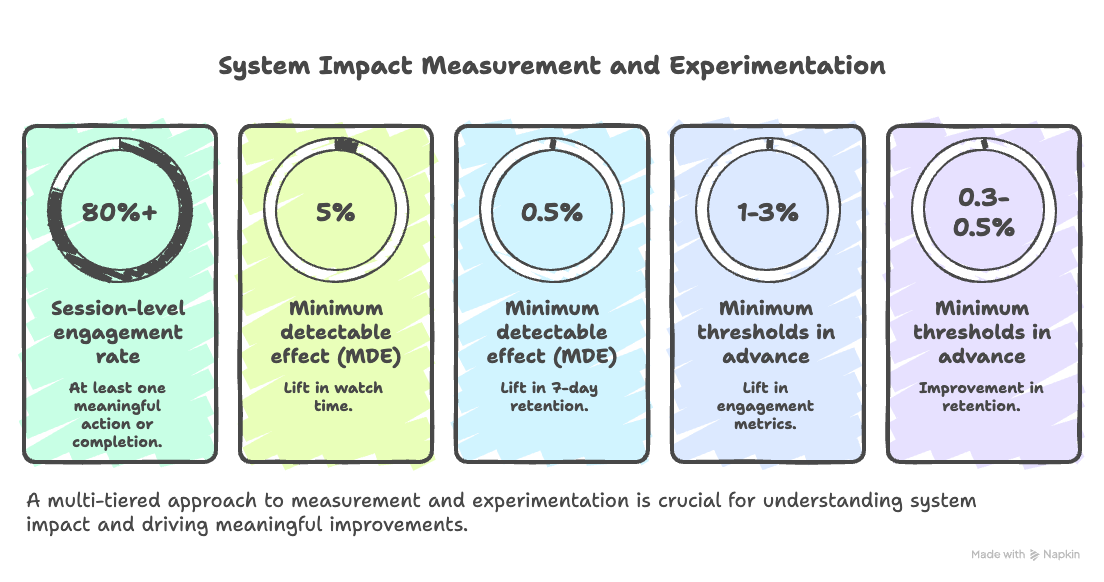 Sidebar: Explicitly addressing novelty effects (where users engage more simply because the content is new/different) is a signal of production experience. Interviewers at L5+ levels will probe for this.