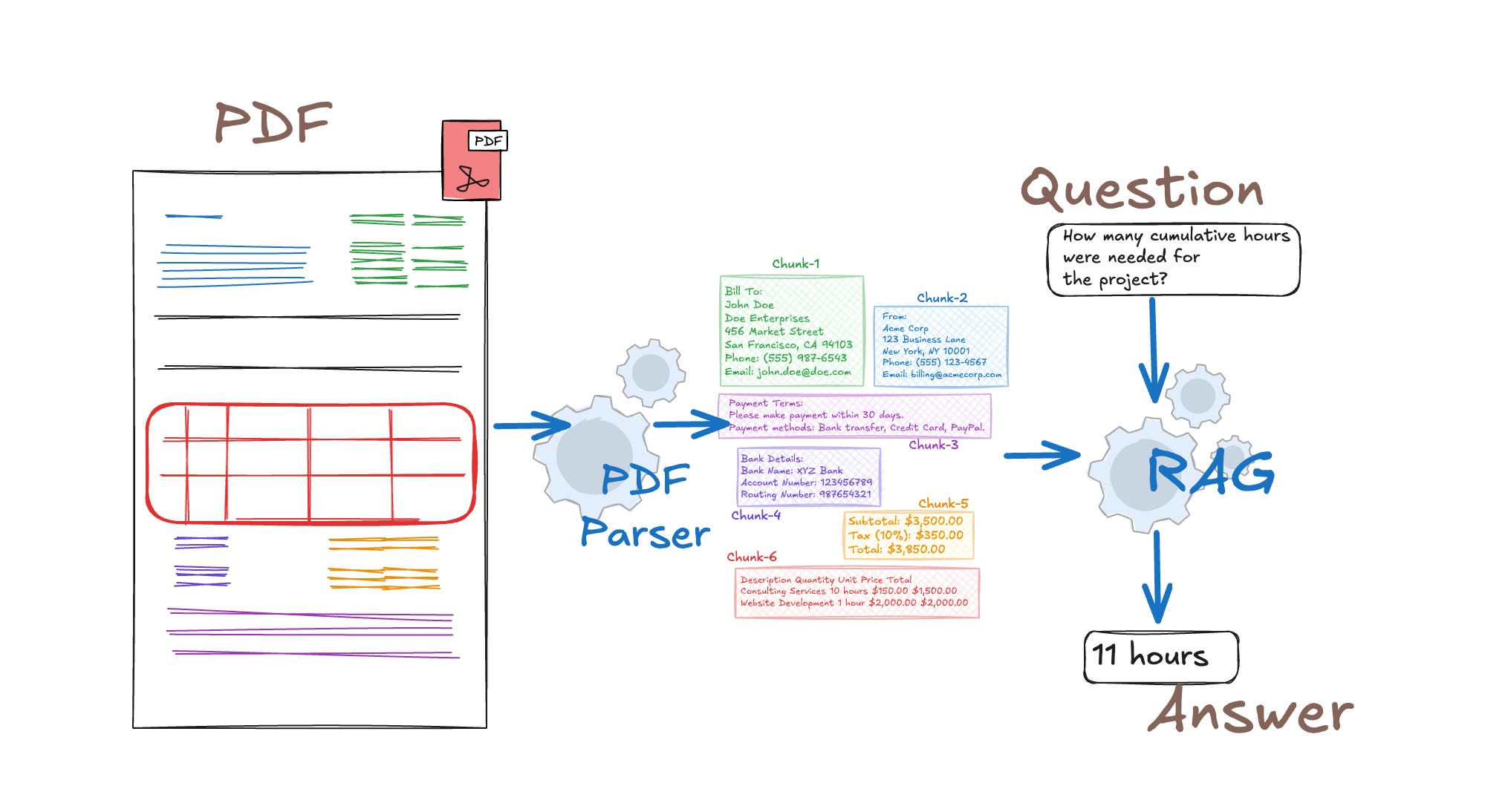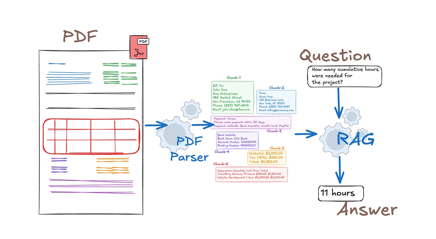 Now, PDFs are the case I’d stress test the hardest. Naive PDF text extraction, where you just pull the raw text layer, produces garbage when the document has a complex layout. Tables get linearized incorrectly, footnotes appear in the middle of a paragraph, section headers run into body text. For an enterprise corpus, that’s a serious problem because tables often contain the most precise, actionable information e.g. compensation bands, error code definitions, SLA thresholds etc. If you corrupt those at parsing time, you can’t fix them downstream. I’d use a layout-aware parser that actually understands document structure, and tables specifically get converted into structured markdown so they’re retrievable.