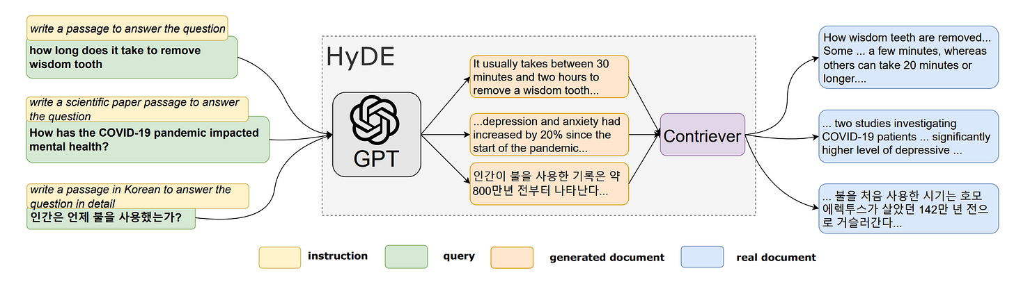 There’s also a more aggressive variant of this called HyDE (Hypothetical Document Embedding), where instead of embedding the query, you generate a short hypothetical document that would answer the question and embed that. The intuition is that a hypothetical answer lives closer in embedding space to real document passages than the question itself does. It works surprisingly well for complex or abstract questions.